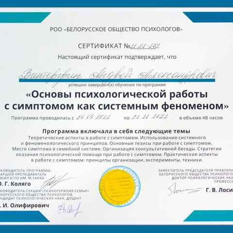 Профессиональная принадлежность: Андрей является действующим членом Общественного объединения «Общество психологов» в Беларуси.